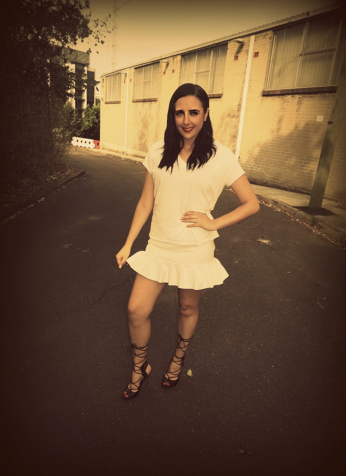 I love this little white ruffle skirt from Zara the ruffles really stand and I love wearing white in the summer. I wore the skirt with a jersey style monochrome tee and corset lace up heels from River Island.